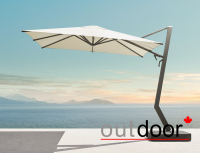 Каркас выполнен из легкого и прочного алюминия, что гарантирует его надежность при эксплуатации в открытом пространстве. Купол из плотной акриловой ткани обладает стойкостью к выгоранию и воздействию осадков. Массивная база из пластика обеспечивает конструкции дополнительную стабильность. Зонт устойчив к сильным ветрам 6-го уровня до 13,8 м/с.